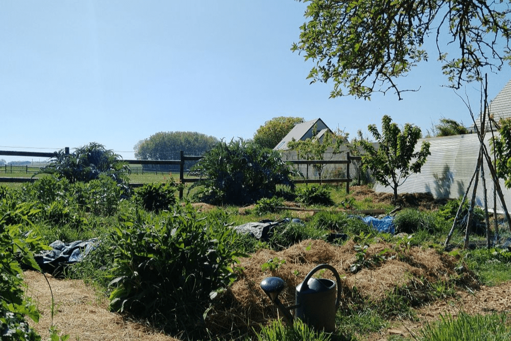 À 15 minutes de Caen et 10 minutes de Bayeux, à Moulins en Bessin, nous vous accueillons dans un petit corps de ferme installé sur deux hectares. Nous le rénovons comme un îlot de paix dédié aux cycles du vivant, où pratique équestre et permaculture sont complémentaires.